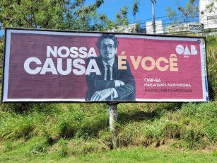 A OAB baiana aproveitou o Mês da Advocacia, agora em agosto, para surpreender com o lançamento de uma campanha de outdoor no Estado. Embora não tenha ficado claro quem é a “causa” da instituição - se o cidadão ou o advogado -, está evidente que o grupo que atualmente a comanda se movimenta para tentar se manter no poder nas eleições de novembro, não importa quem seja o seu candidato, que ainda não foi claramente definido.