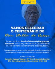 O Congresso Nacional realizará, no dia 12 de junho, às 14h, uma sessão solene em homenagem ao centenário de nascimento de Mãe Stella de Oxóssi, uma das mais importantes líderes religiosas do Brasil. A iniciativa é fruto do requerimento conjunto do deputado federal Bacelar (PV), da deputada Lídice da Mata (PSB) e do senador Jacques Wagner (PT), como forma de reconhecer o legado espiritual, cultural e social deixado por essa grande mulher baiana.