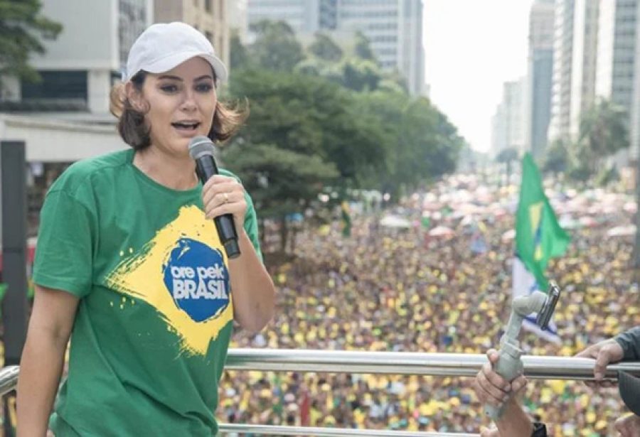 Damares pediu união para as donas de casa e criticou a ida da PF à casa de Michelle e de Bolsonaro. A senadora definiu Michelle como “a maior líder que esta Nação poderia esperar”.