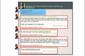 Mensagens reproduzidas no relatório final em que a Polícia Federal indiciou o ex-presidente Jair Bolsonaro (PL) e o seu filho Eduardo Bolsonaro (PL-SP) mostram o deputado federal xingando o pai devido a uma entrevista em que ele foi chamado de imaturo.