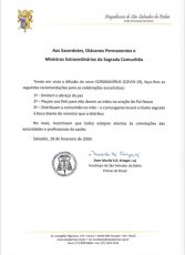 “Distribuam a comunhão na mão - o comungante levará a hóstia sagrada à boca diante do ministro que a distribui. No mais, incentivem que todos estejam atentos às orientações das autoridades e profissionais de saúde”, finaliza o documento.