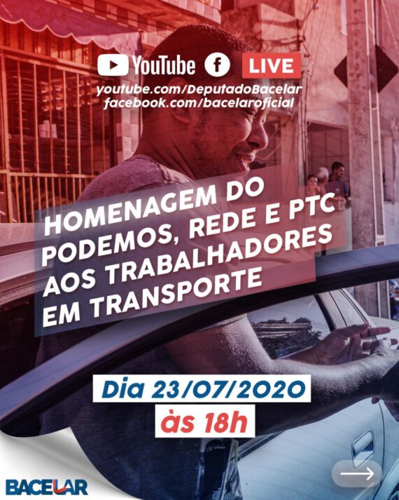 Além do presidente do Podemos e Magno Lavigne, pré-candidato à prefeitura de Salvador e porta-voz estadual da Rede, também vão participar Rivailton Veloso, presidente estadual do PTC, sindicalistas e diversos profissionais da área. A transmissão acontecerá pelo facebook do presidente do Podemos (www.facebook.com/bacelaroficial) e fan pages oficiais das lideranças.