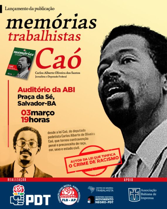 A Fundação Leonel Brizola – Alberto Pasqualini (FLB-AP), através do seu Centro de Memórias Trabalhistas, lança nesta sexta-feira (03), às 19h, no auditório da Associação Bahiana de Imprensa (ABI), na Praça da Sé, a publicação sobre o jornalista, advogado e ex-deputado federal Carlos Alberto de Oliveira, o Caó.