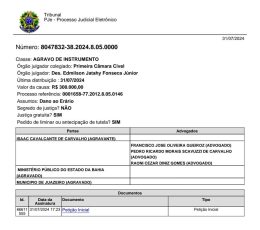 Na segunda-feira (29), o juiz titular da 1ª Vara da Fazenda Pública de Juazeiro, José Goes Silva Filho, intimou a Prefeitura do município para se manifestar sobre o acordo, fixando o prazo de 10 dias para a manifestação. Com isso, a questão não estaria resolvida até a convenção da Federação Brasil da Esperança (PT, PCdoB e PV), marcada para a próxima segunda (5). Isaac, então, entrou com o agravo hoje no TJ-BA buscando uma decisão que o fortaleça politicamente entre os aliados.